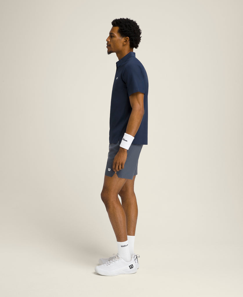 A clean, simple classic, the Wilson Daily Court Polo is a proven winner on and off the court. Crafted from performance fabric that absorbs moisture and dries quickly, this versatile tennis top has an ergonomic shape that lets you move freely. Bonding along the hem, collar, cuffs and back panel gives the polo a smooth, streamlined finish.