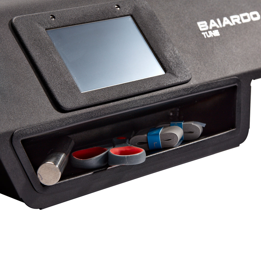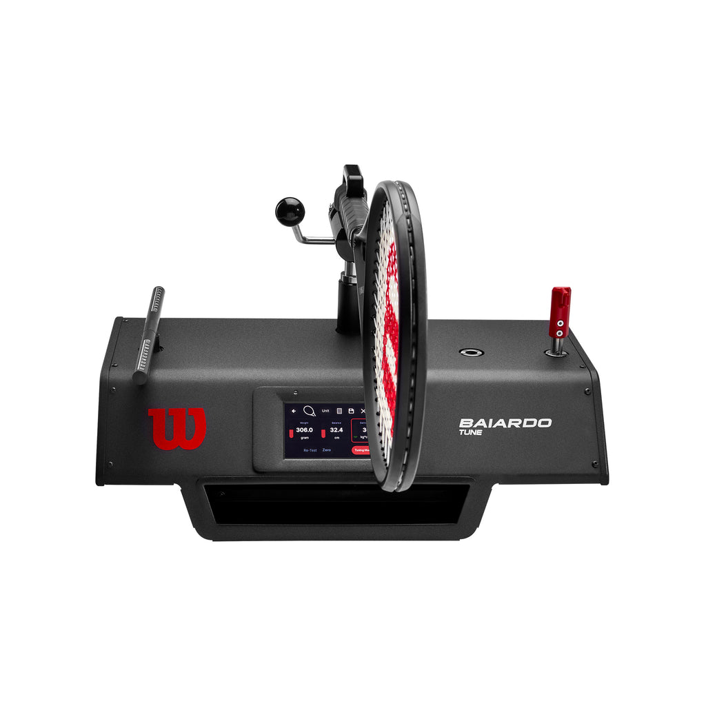 The Baiardo Tune Machine is a revolutionary machine that measures weight, balance, and swing weight, that allows for quick and efficient racquet tuning.