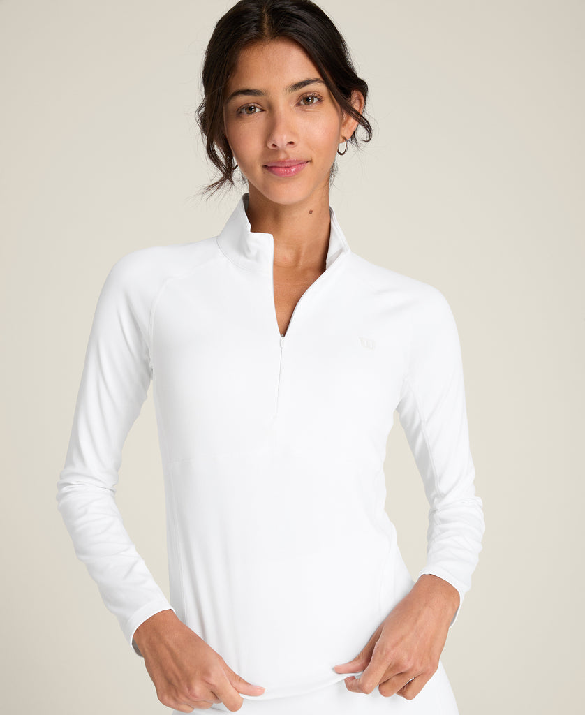 Playing tennis through the cooler months is all about finding the right layers. The Wilson Baseline Half Zip is a high-performance technical top you can wear solo or layered over your favorite tank top. It's made from thick fabric that's quick-drying, UV-protective and buttery soft. The collar is higher at the back of the neck for extra sun coverage, and ergonomic seams under the arms help reduce chafing.