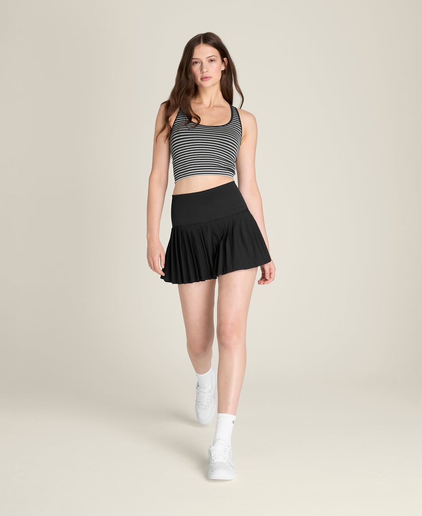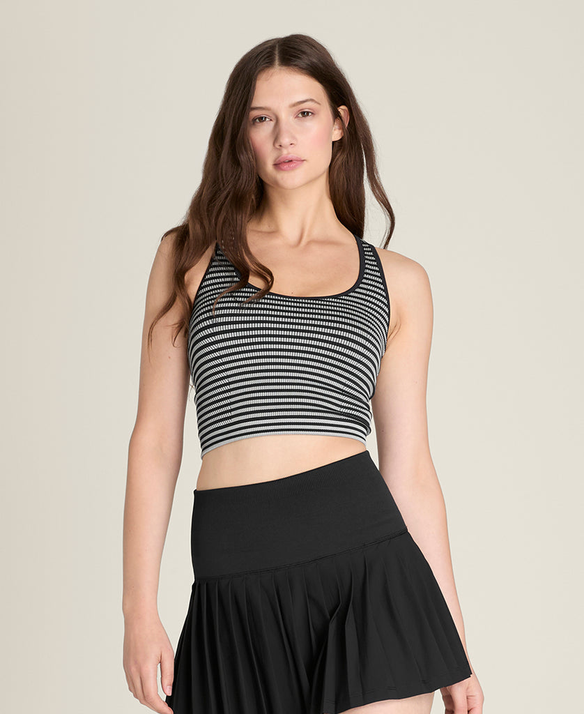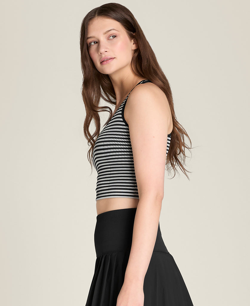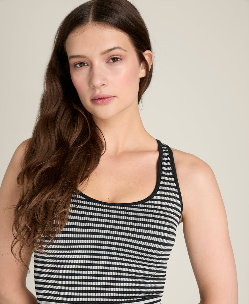 The Everyday Brami is just that - the multi-purpose piece with just the right coverage to do it all. It's incredibly nuanced and considered for such a vital garment starting with the built-in shelf bra with removable cups that are perforate for ventilation and to control sweat when you wear it for activity. From a design standpoint, its waist-length fit, rib band and slimming rib textures work together to keep the brami in place. On the back, a skinny racer back allows for tremendous range of motion without interfering with your shoulder blades, with the optimal amount of coverage when you sweat.