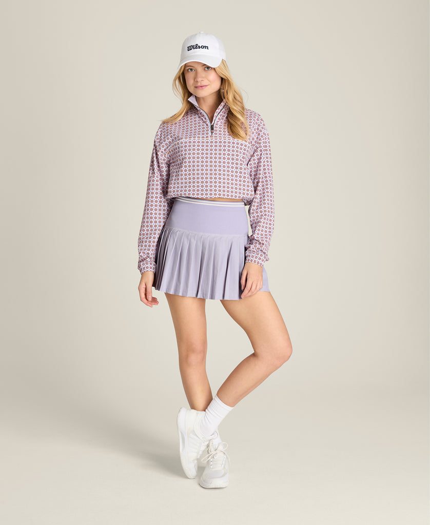 A century in tennis has brought us here, taking a simple thing and making it better. The Midtown Skirt is our riff on a traditional tennis skirt, a seamless interior short with a pleated skirt overlay. Wear it to play tennis, or do more - with UV protection, unique fabric and multi-functional design. The inner short, which is upper-thigh length, has a storage pocket and our proprietary tiered compression waistband provides a perfect fit.